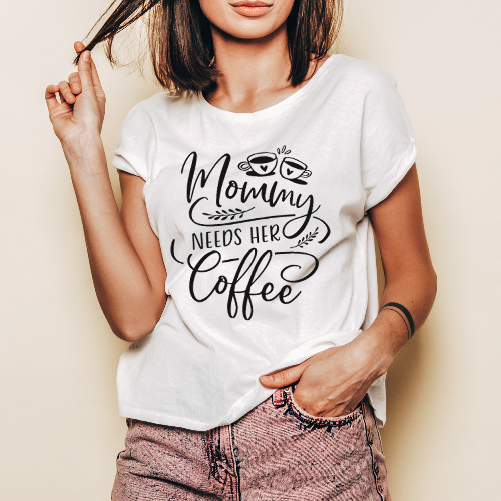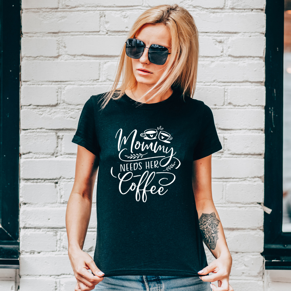 Bellissima T-Shirt per la mamma con la scritta “Mommy Needs Her Coffee”. Questa bellissima t-shirt sarà un regalo perfetto per tutte le mamme amanti del caffè mattutino, prima di ogni cosa! Se la vita da mamma è spesso frenetica, questa maglietta è l’ideale per strappare un sorriso alla diretta interessata!