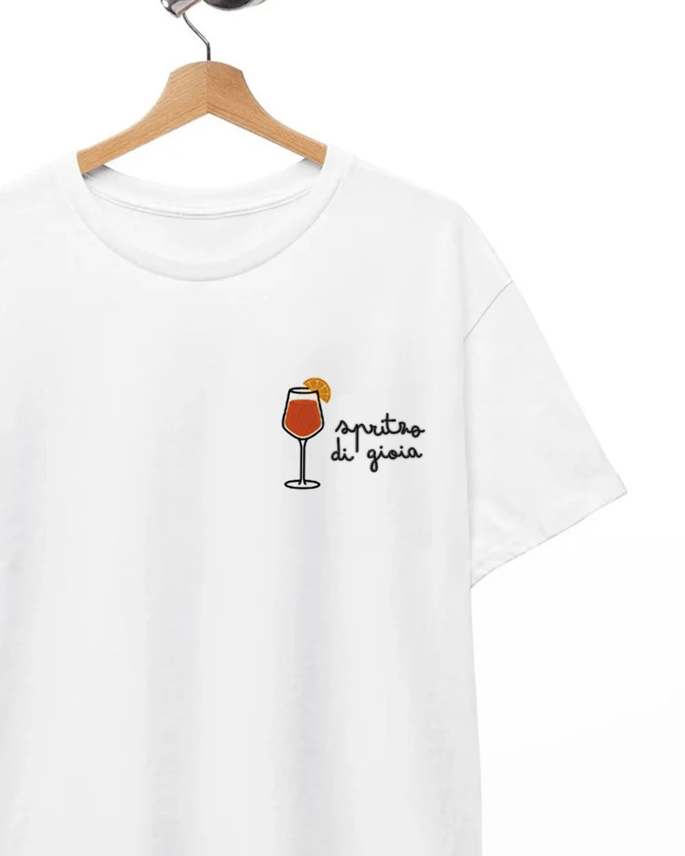 T-Shirt Maglietta Personalizzata Scritta Ricamata Divertente “Spritzo di Gioia” – Idea Regalo Compleanno Lei, per Amica