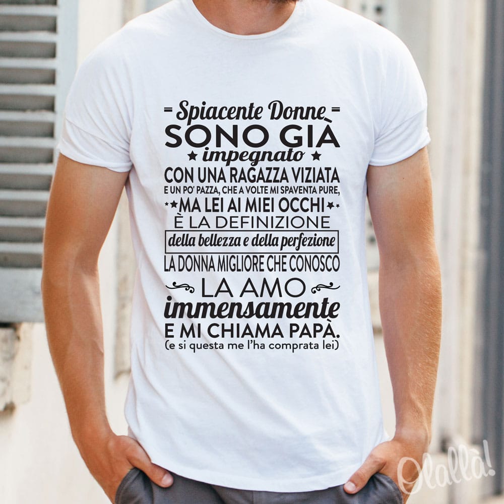 2 recensioni per Maglietta T-Shirt Personalizzata “Spiacente Donne, Sono Già Impegnato” – Idea Regalo Festa del Papà