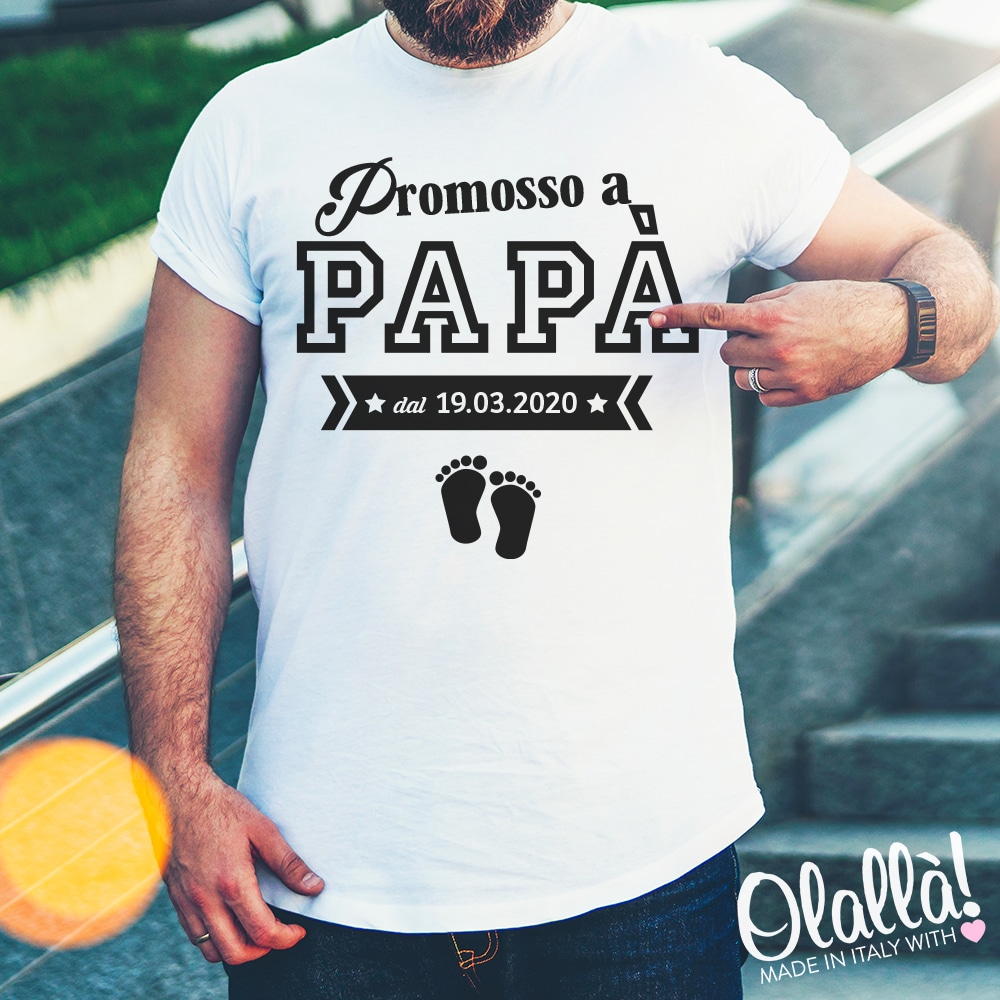 Dolcissima t-shirt personalizzabile con la data di nascita del tuo cucciolo, perfetta come idea regalo per un papà! E’ il dono perfetto per tutti i padri orgogliosi di poter essere chiamati così! I piedini disegnati rendono questa maglietta irresistibile…