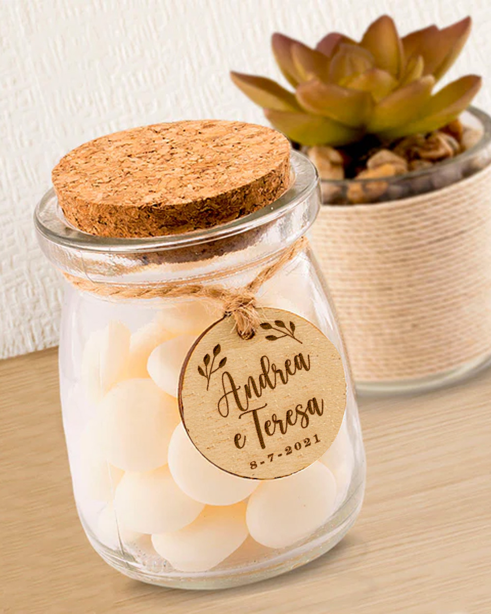 • PER IMPREZIOSIRE LE TUE BOMBONIERE: degli eleganti tag in legno tondi, con decoro floreale, cuoricino e frase in stile calligrafico personalizzate per rendere unico il tuo evento. Ideali da applicare su sacchettini, scatoline o vasetti portaconfetti.