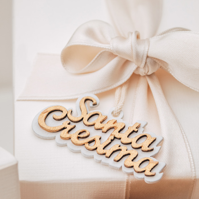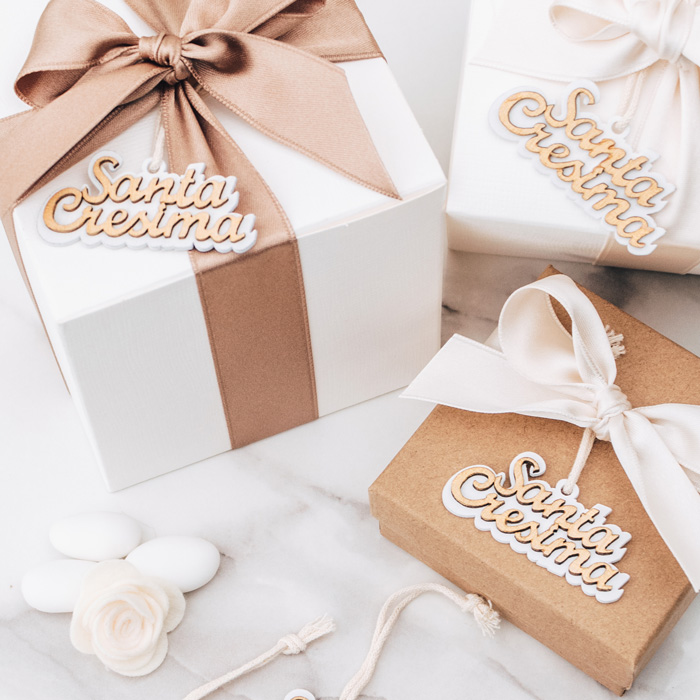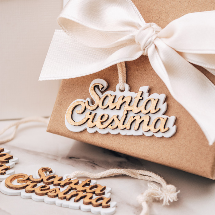 Bellissimo set di 10 tag in legno con scritta “Santa Cresima” in legno. Perfette per essere usata come decorazione finale per la tavola della tua cerimonia oppure per completare le tue bomboniere per la santa cresima.