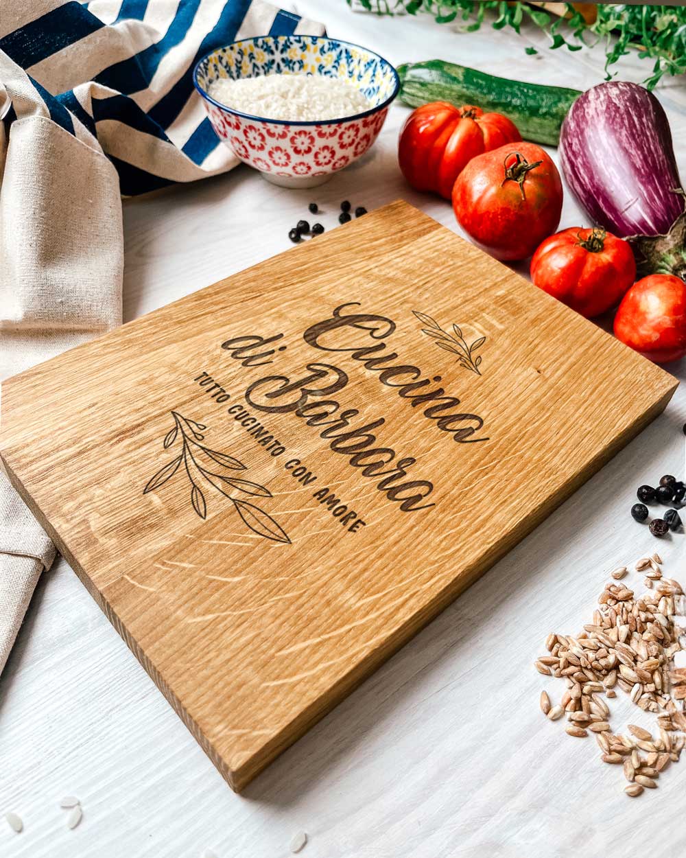 Questi taglieri sono realizzati in maniera artigianale nelle zone alpine dell’Europa, incisi e finiti ad olio in maniera artigianale in Italia nel nostro laboratorio produttivo. Sono adatti per il contatto con gli alimenti. Realizzati in pregiato legno di faggio e quercia, faranno una splendida figura in ogni cucina. Prezzo varia in base alle misure e alle finiture disponibili.