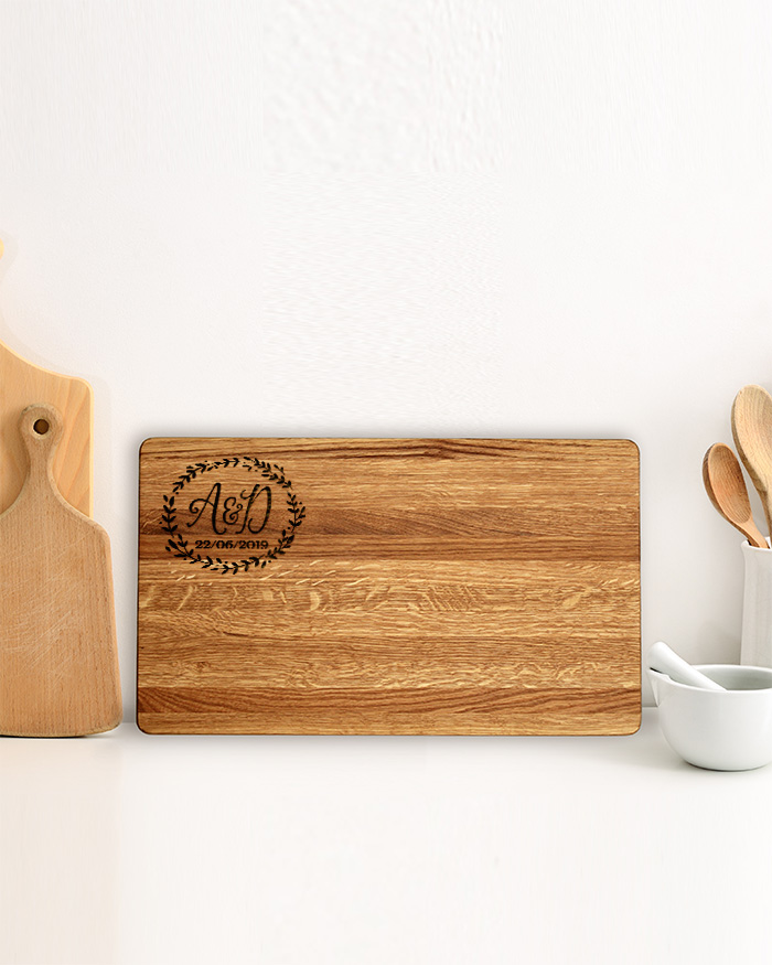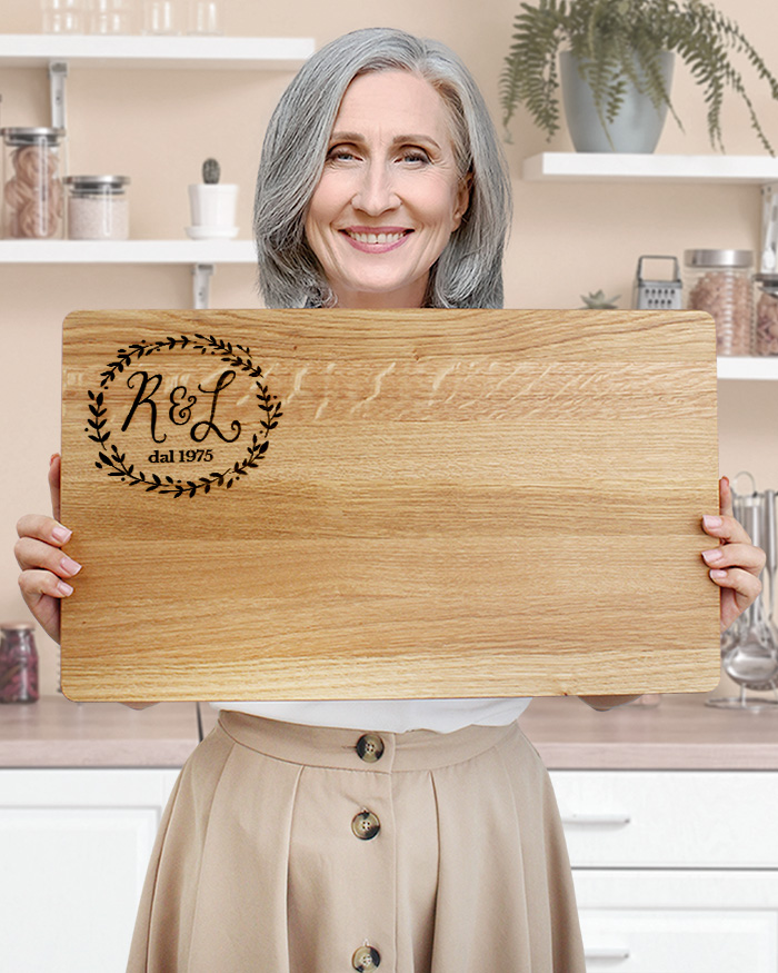 Tagliere Personalizzato con Incisione con Iniziali e Ghirlanda – Idea Regalo Anniversario
