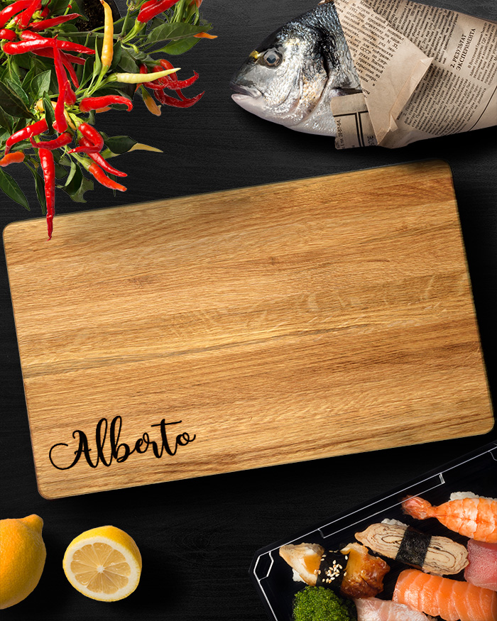 Stupendo Tagliere di legno personalizzato con il nome che desideri. Un dolce pensiero per la donna o l’uomo appassionato di cucina! Il tagliere è disponibile in varie dimensioni, tra legno di ciliegio e pregiatissimo rovere. Ideale per servire ottimi antipasti, portare in tavola le vostre pietanze o anche come decorazione originale ed unica per la cucina.