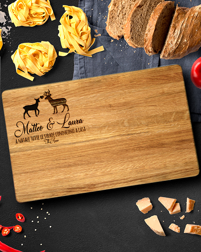 Tagliere Personalizzato con Incisione con Nomi e Renne – Idea Regalo di Natale