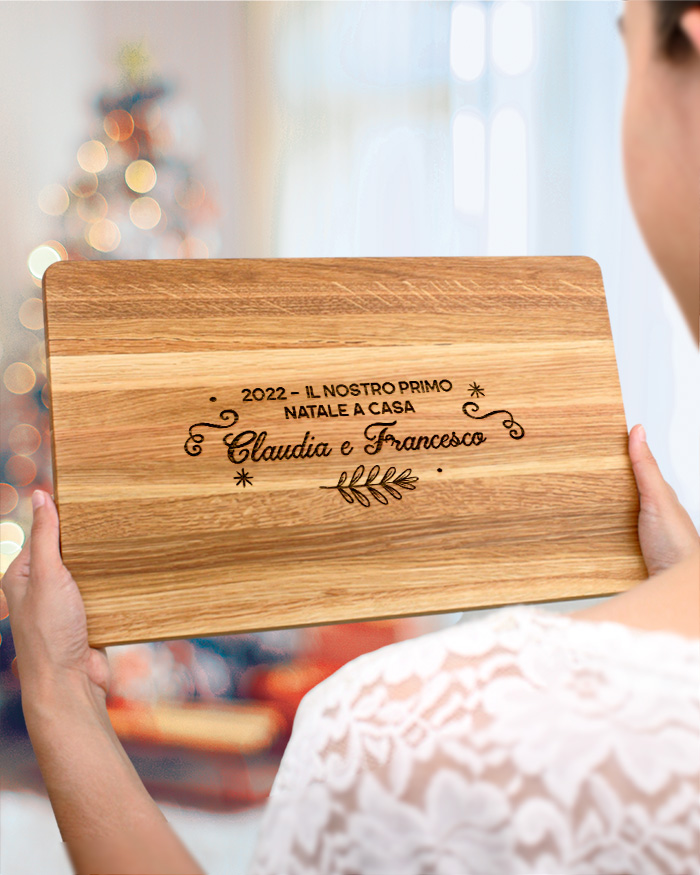Tagliere Personalizzato con Incisione “Il Primo Natale nella Nostra Nuova Casa” e Dedica – Idea Regalo di Natale