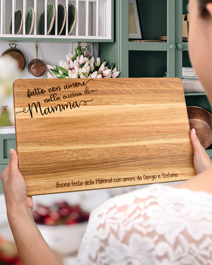 1 recensione per Tagliere Personalizzato con Incisione in Corsivo e Dedica – Idea Regalo Mamma