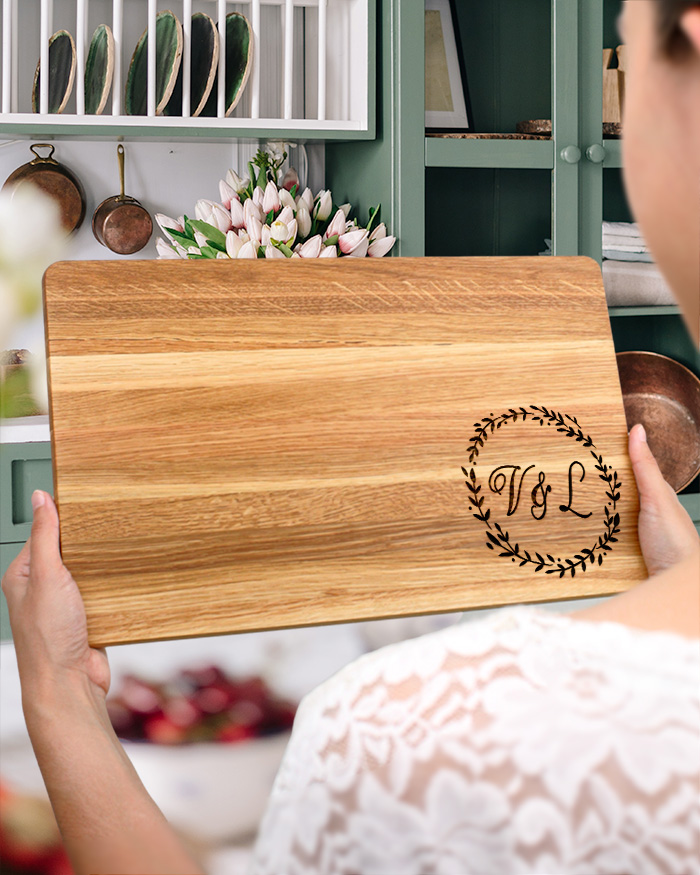 Stupendo Tagliere di legno personalizzato con le iniziali degli sposi. Un regalo perfetto per festeggiare il matrimonio! Il tagliere è disponibile in varie dimensioni, tra legno di ciliegio e pregiatissimo rovere. Ideale per servire ottimi antipasti, portare in tavola le vostre pietanze o anche come decorazione originale ed unica per la cucina.