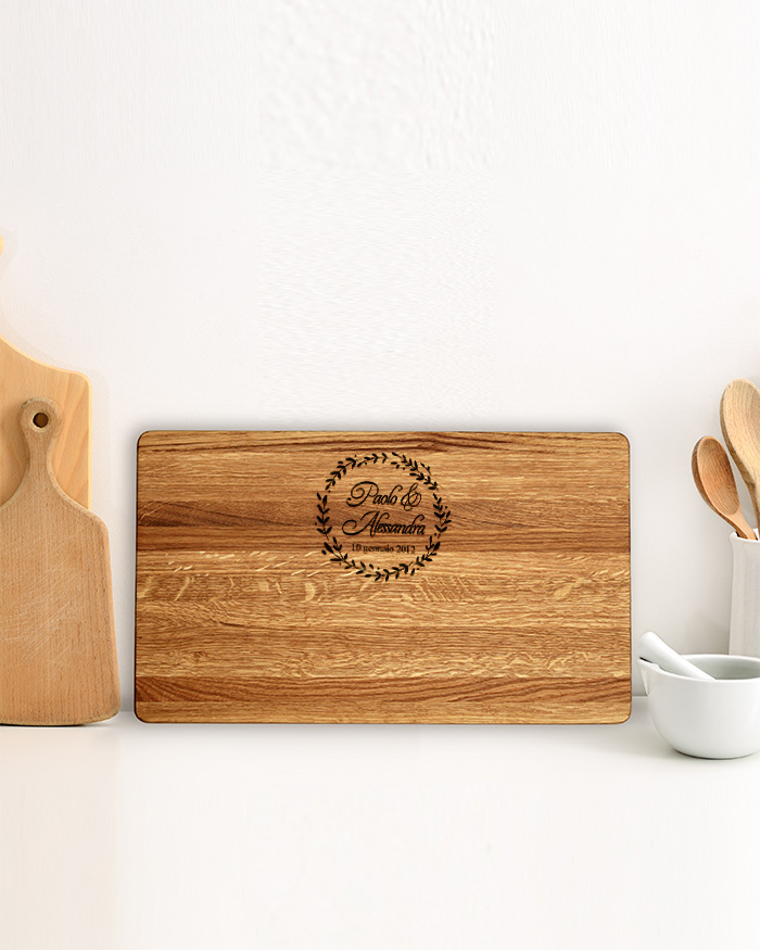 Elegante Tagliere di legno personalizzato con un’incisione con i vostri nomi e la data. Un regalo perfetto per festeggiare il vostro anniversario, matrimonio o qualsiasi data importante per voi! Il tagliere è disponibile in varie dimensioni, tra legno di ciliegio e pregiatissimo rovere. Ideale per servire ottimi antipasti, portare in tavola le vostre pietanze o anche come decorazione originale ed unica per la cucina.