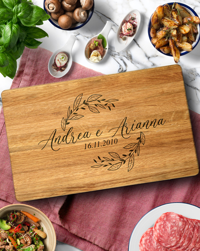 2 recensioni per Tagliere Personalizzato con Nomi, Data e Foliage – Idea Regalo Anniversario