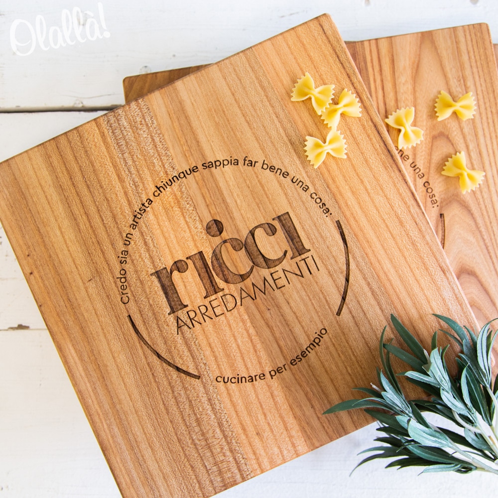 Ordine aziendale? Richiedi un preventivo >Raffinato e moderno tagliere personalizzato con il nome o il logo della vostra azienda. Un regalo originale per i vostri collaboratori o per i vostri clienti migliori, in occasione del Natale o di un evento speciale. Finalmente un dono bello e utile che darà risalto alla vostra azienda. Il tagliere è disponibile in varie dimensioni e tipi di legno.