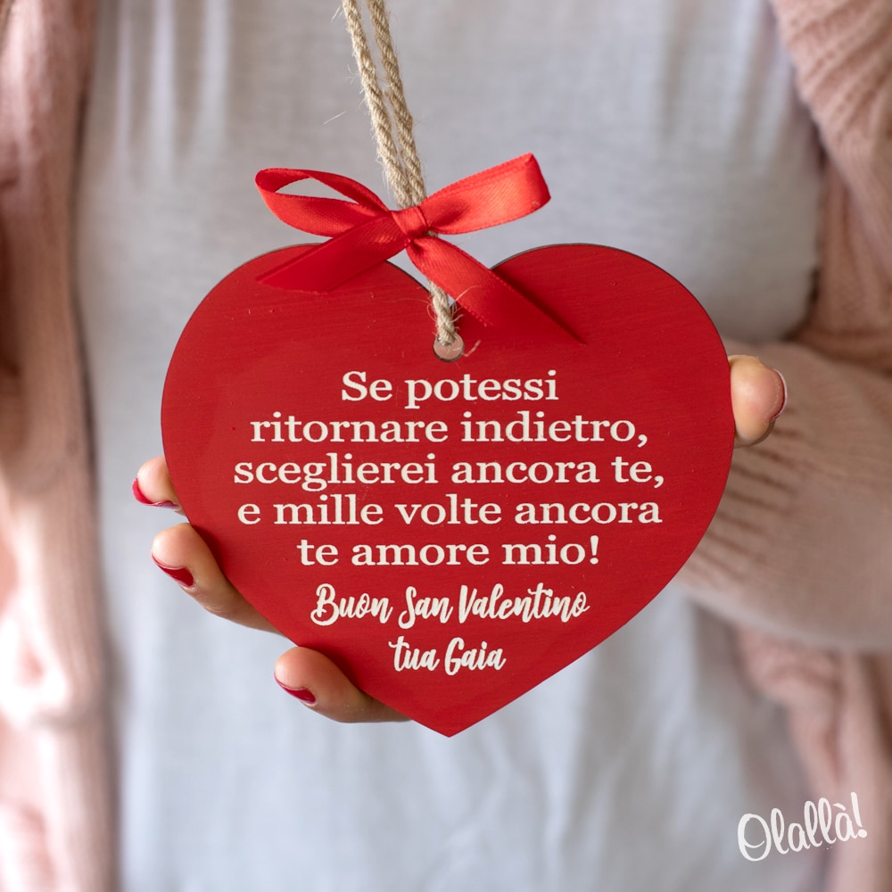 Splendida targhetta a forma di cuore rosso o nero in legno personalizzabile con il tuo messaggio e la tua dedica. Un dolce regalo d’amore per celebrare e ricordare San Valentino o il giorno del vostro anniversario in modo unico e speciale.