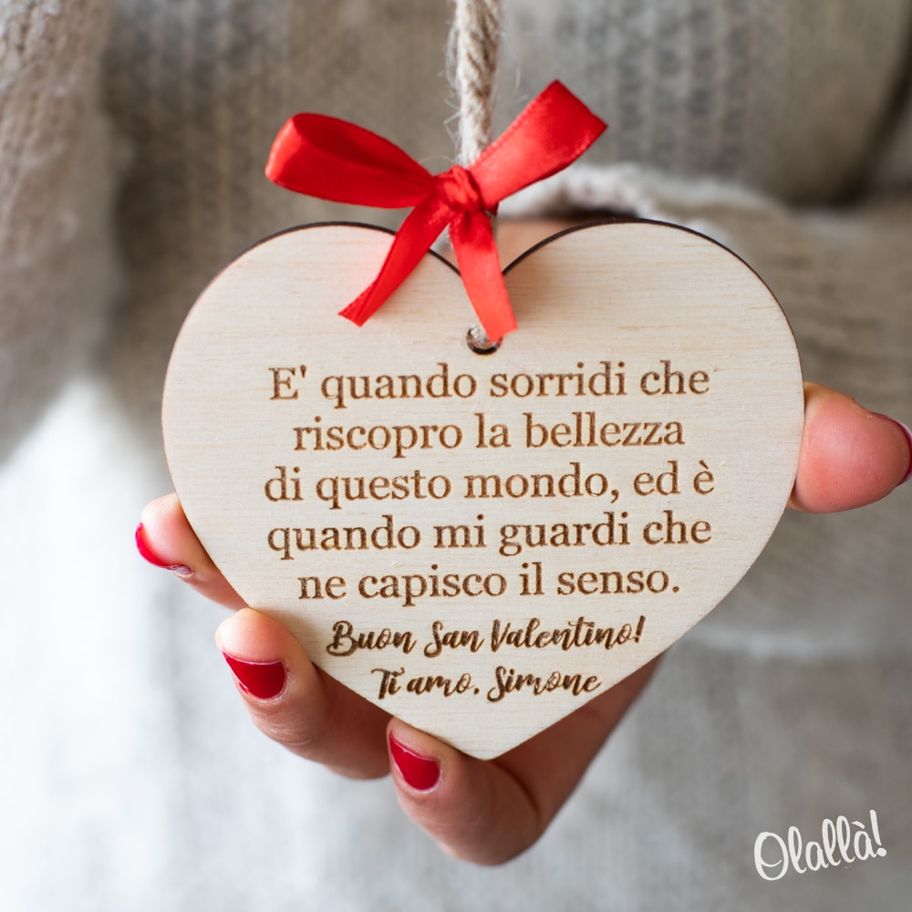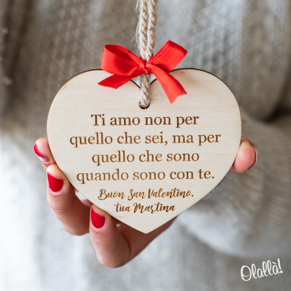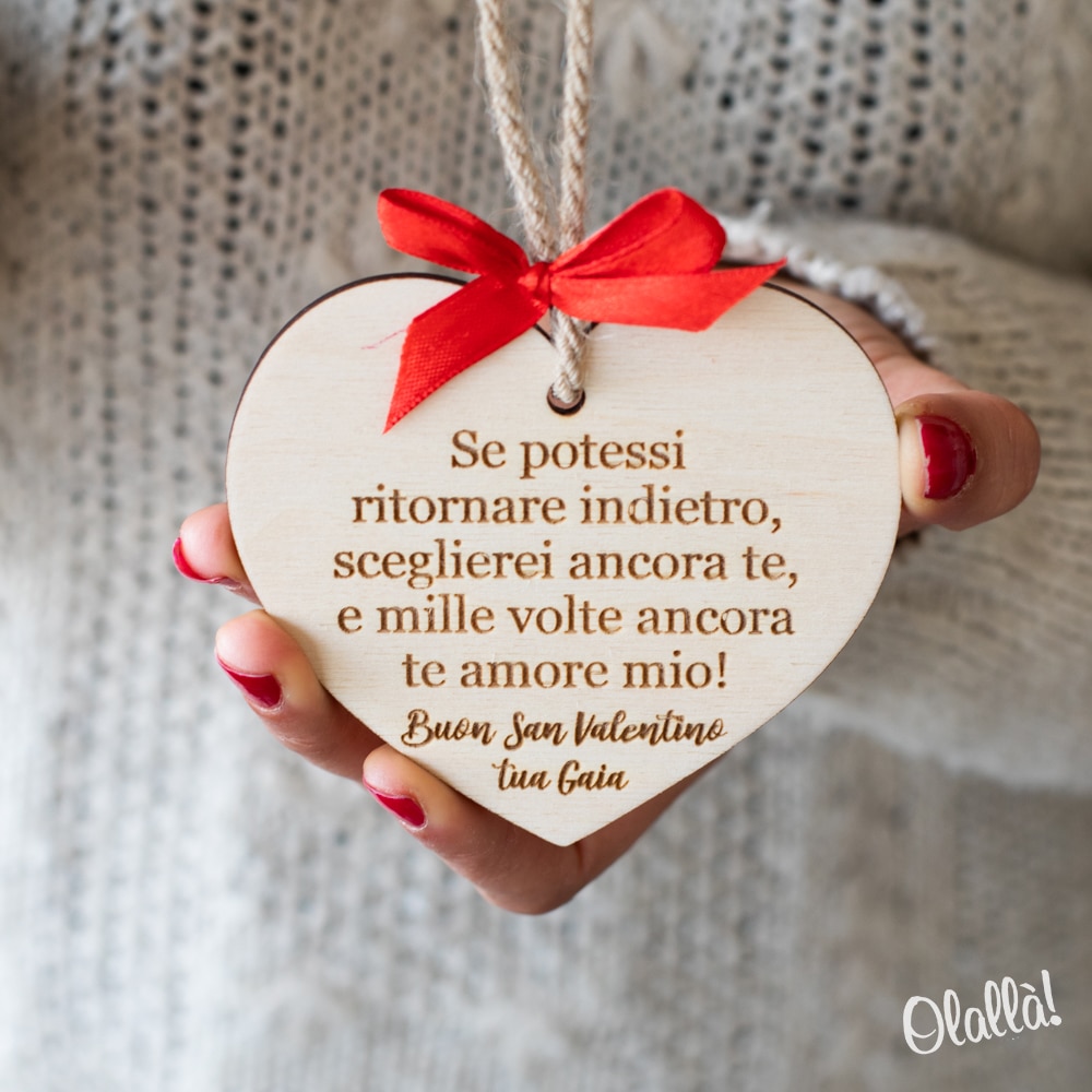 Splendida targhetta a forma di cuore in legno di betulla personalizzabile con il tuo messaggio e la tua dedica. Un dolce regalo d’amore per celebrare e ricordare San Valentino o il giorno del vostro anniversario in modo unico e speciale.