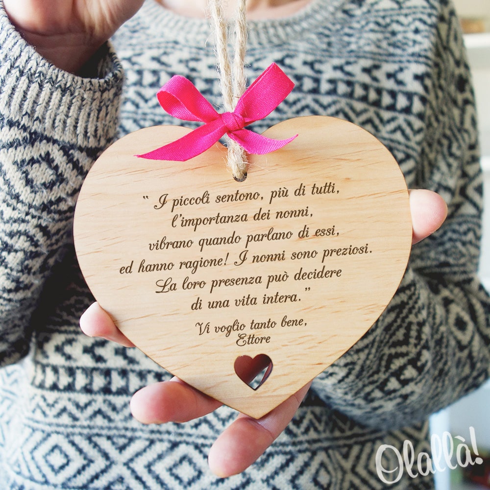 Carinissima targhetta a cuore con cuore intagliato e la vostra dedica speciale. Esprimete il vostro sentimento più vero e fate un regalo davvero sentito ai vostri nonni o a qualsiasi vostro caro.