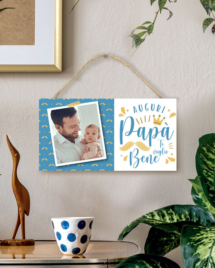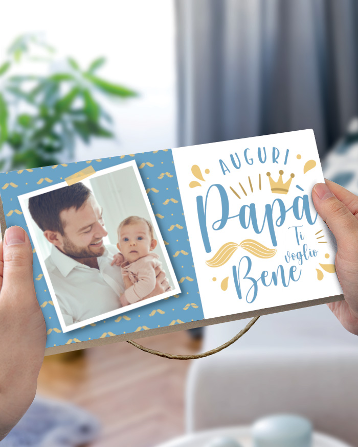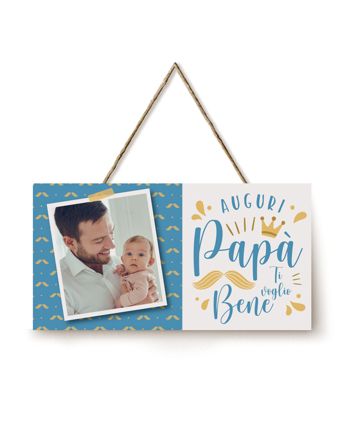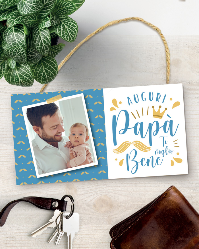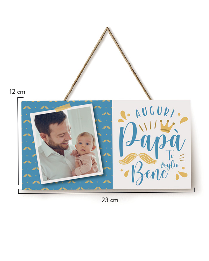 - PERSONALIZZABILE: personalizza la targhetta con una foto assieme al tuo papà. Sarà circondata da simpatici baffi e accompagnata da una dolcissima dedica!
