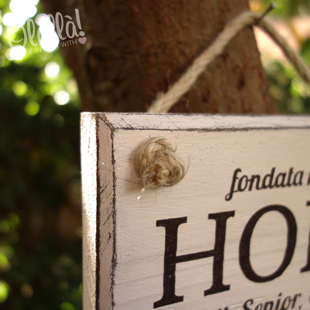 Queste targhette in legno dall’aspetto rustico e invecchiato sono realizzate interamente a mano e fatte su richiesta nel momento dell’ordine. Il legno è solido e pesante…non utilizziamo compensato, questo è legno vero, cosa che dona alla targhetta un ulteriore fascino e sapore vintage ed una generale sensazione e apparenza di una cosa vera, ricercata, di alta qualità. La corda è di juta naturale.