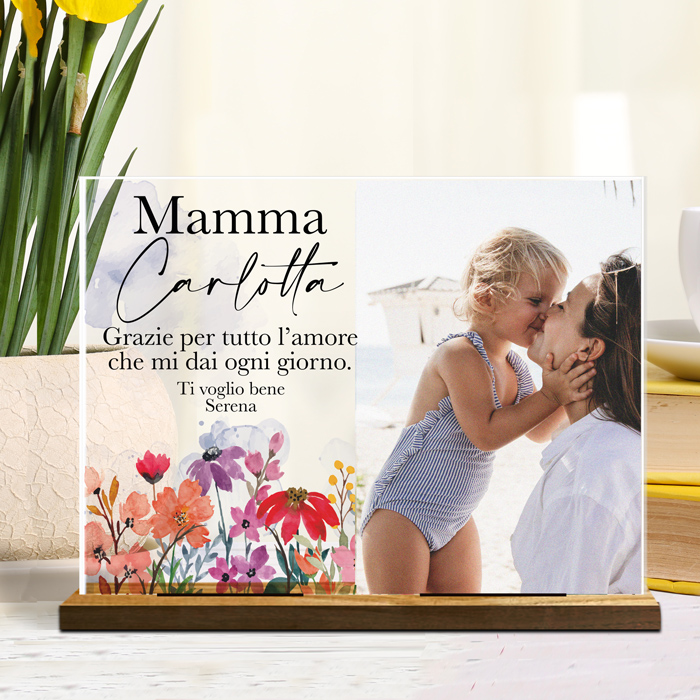 Targhetta Personalizzata con Foto, Dedica e Decorazione Floreale – L’Idea Regalo Perfetta per la Festa della Mamma
