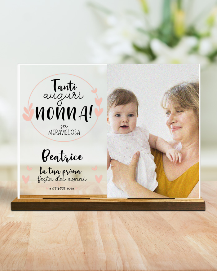 I ricordi sono ciò che rimane, sono il filo sottile che lega il nostro passato al presente. E se potessimo avere sotto occhio, ogni giorno, uno di quei momenti speciali? La Targhetta Placca in Plexiglass Personalizzata è l’ideale per i neo nonni, per chi celebra la festa dei nonni o semplicemente per chi desidera un regalo unico e indimenticabile.