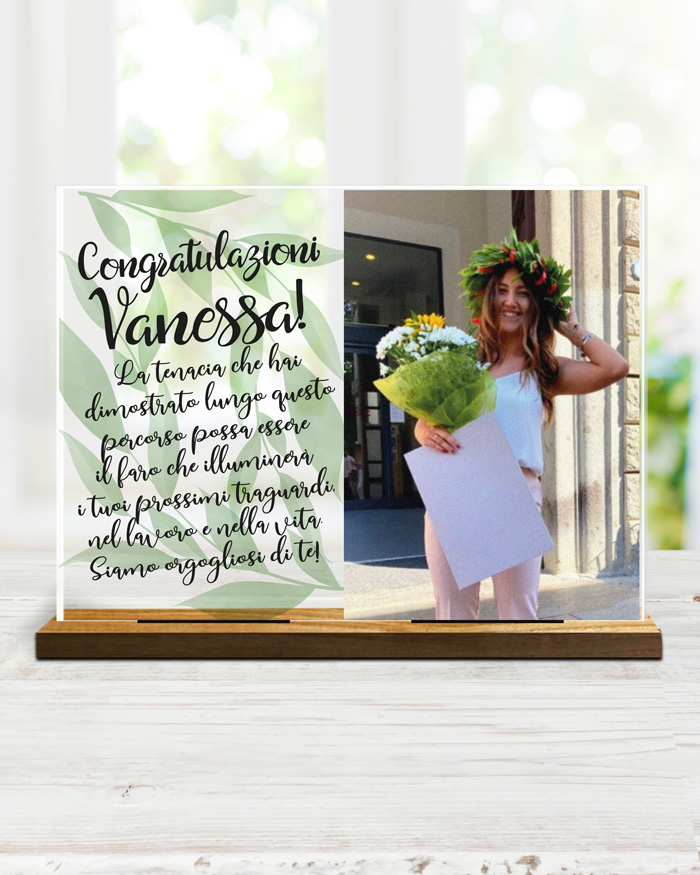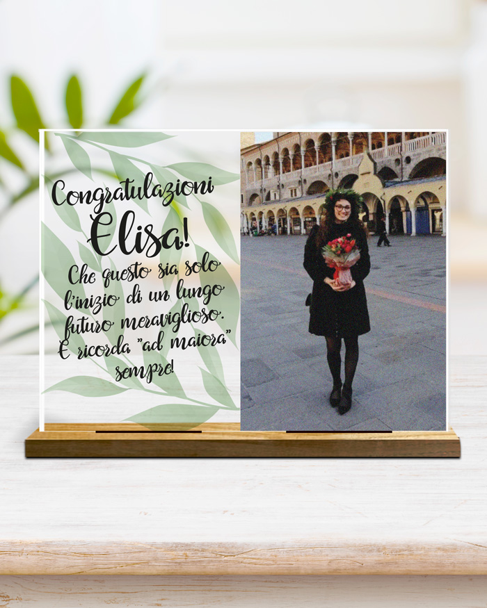 Questa originale targhetta può essere personalizzata inserendo la foto e le frasi che desideri. Sarà un regalo molto gradito dal neo dottore o neo dottoressa che lo riceverà in occasione del conseguimento della sua laurea triennale, magistrale, dottorato o esame di maturità.