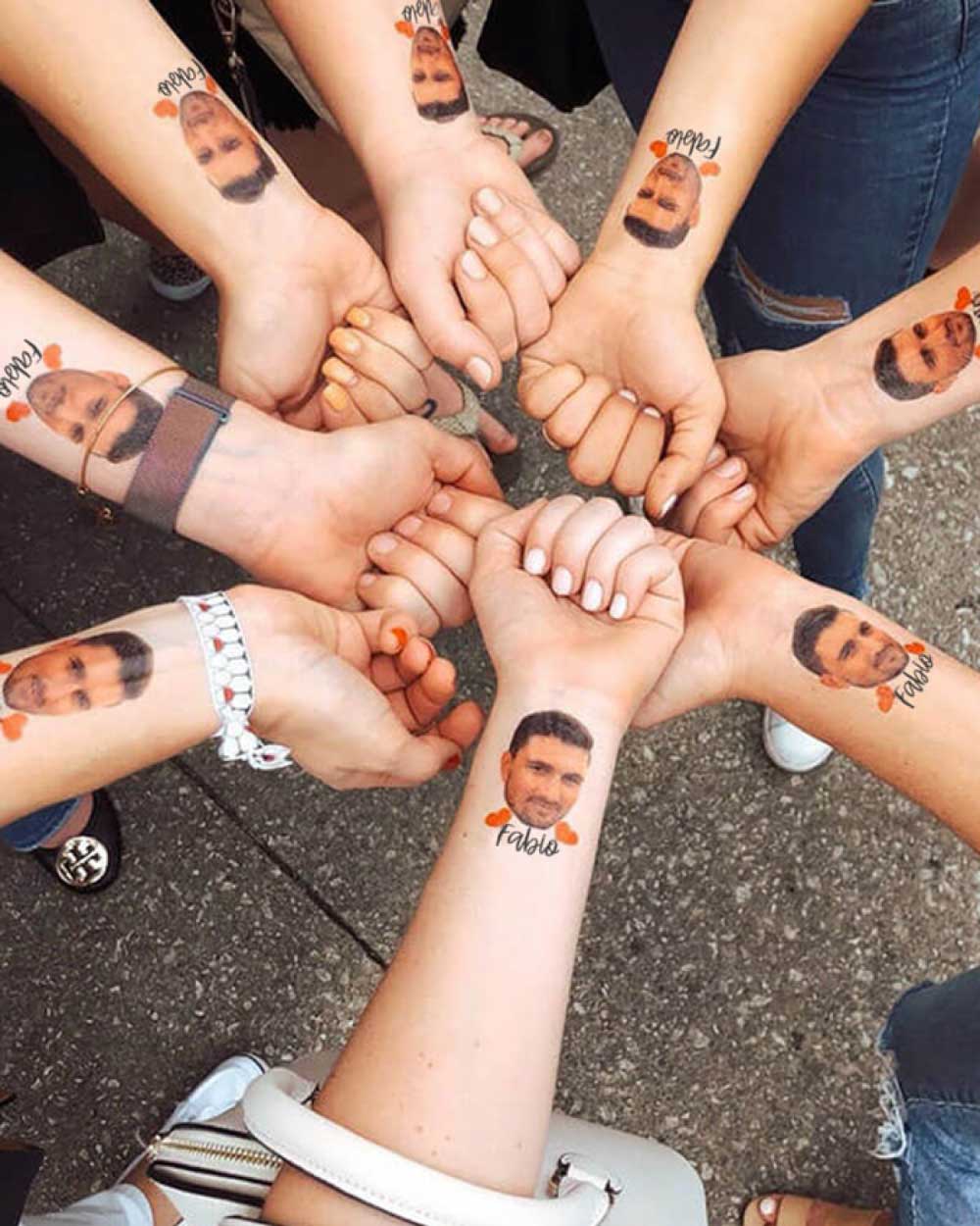 - Foto in alta qualità e cuoricini ironici: Le foto dello sposo sono stampate in alta qualità per garantire un risultato nitido e realistico. Ogni tatuaggio temporaneo include anche cuoricini ironici che aggiungono un tocco di dolcezza e scherzo al design complessivo.