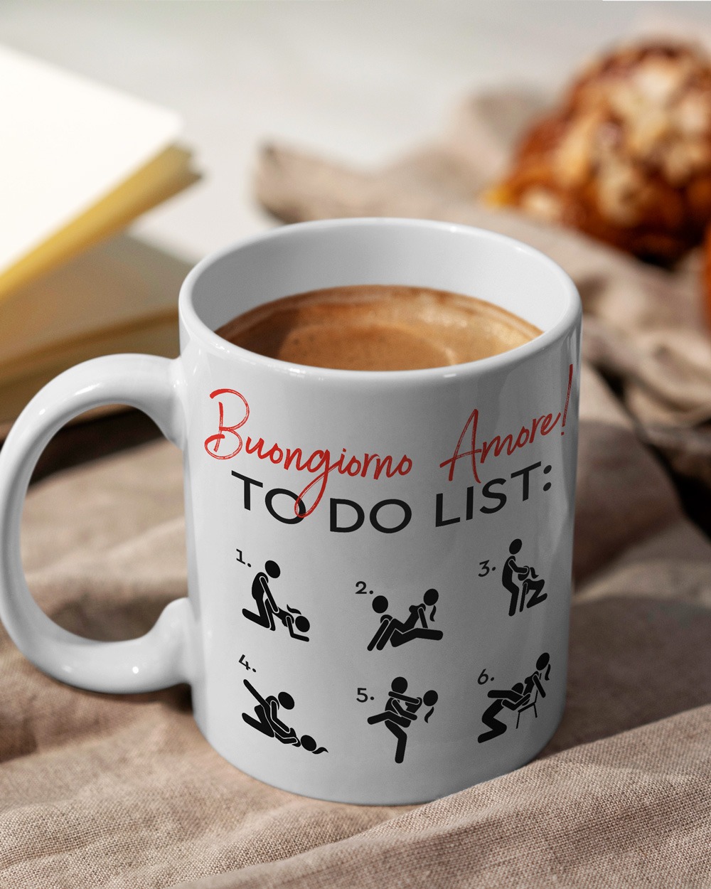Non limitarti a un classico “Buongiorno”! Regala questa tazza al tuo fidanzato per trasmettere un messaggio inequivocabile, con un pizzico di ironia e tanta passione. Un dono perfetto per chi ama iniziare la giornata con un caffè… e proseguirla con una marcia in più!