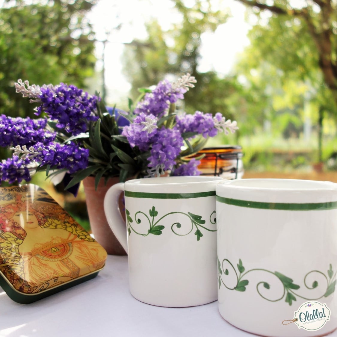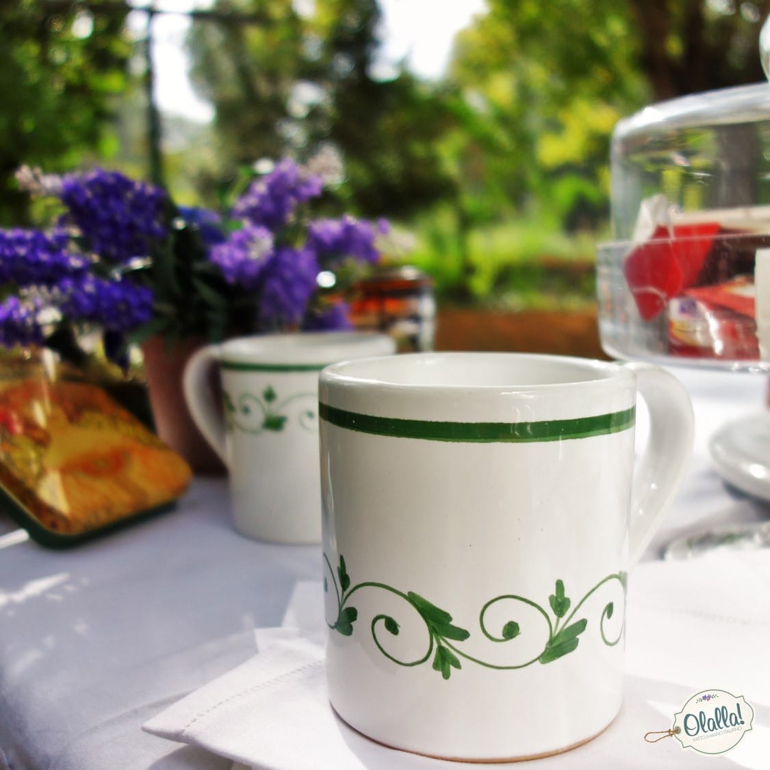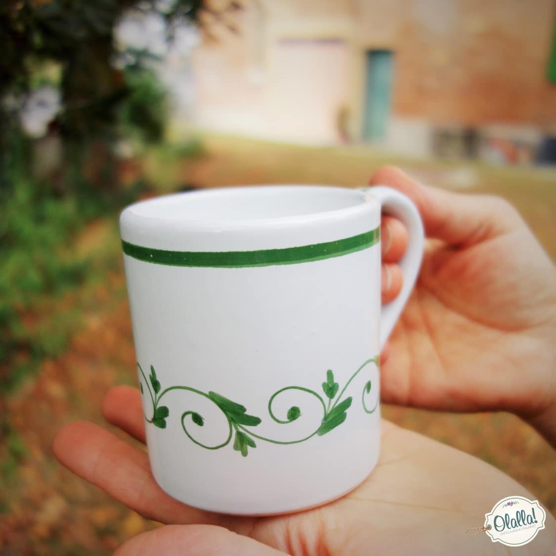 La realizzazione di questa tazza mug personalizzabile con il nome con decoro a riccioli color verde richiede 15/30 giorni lavorativi.