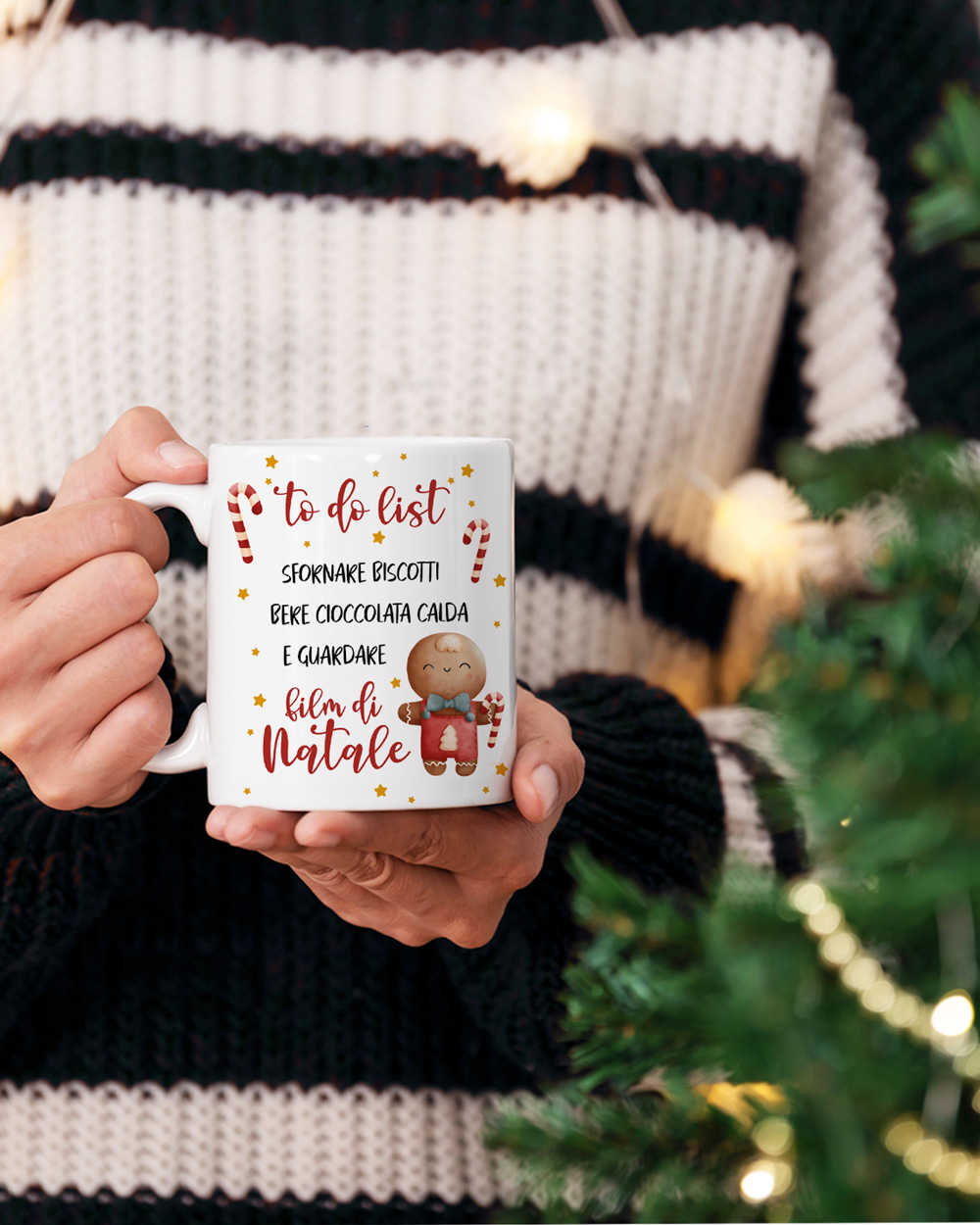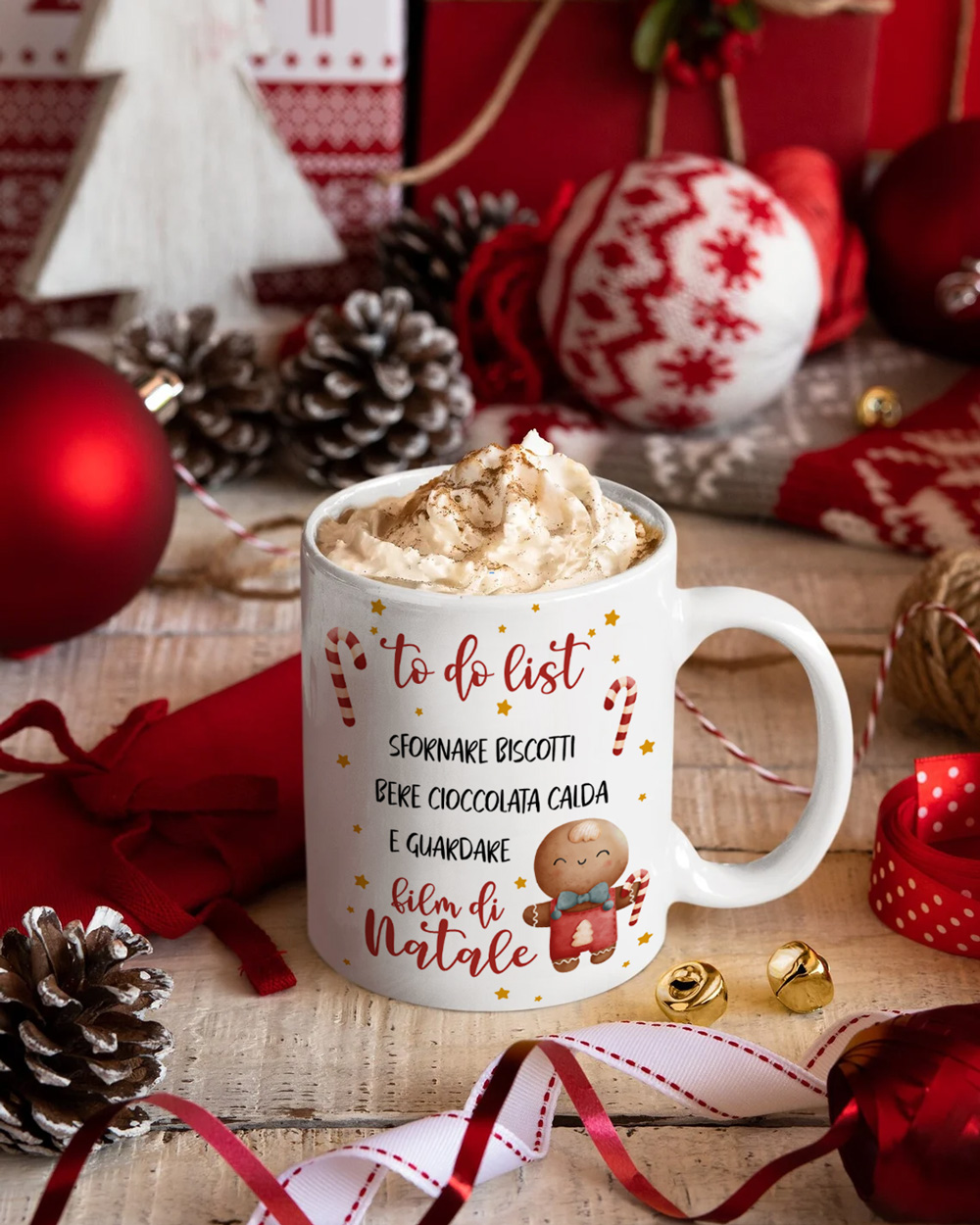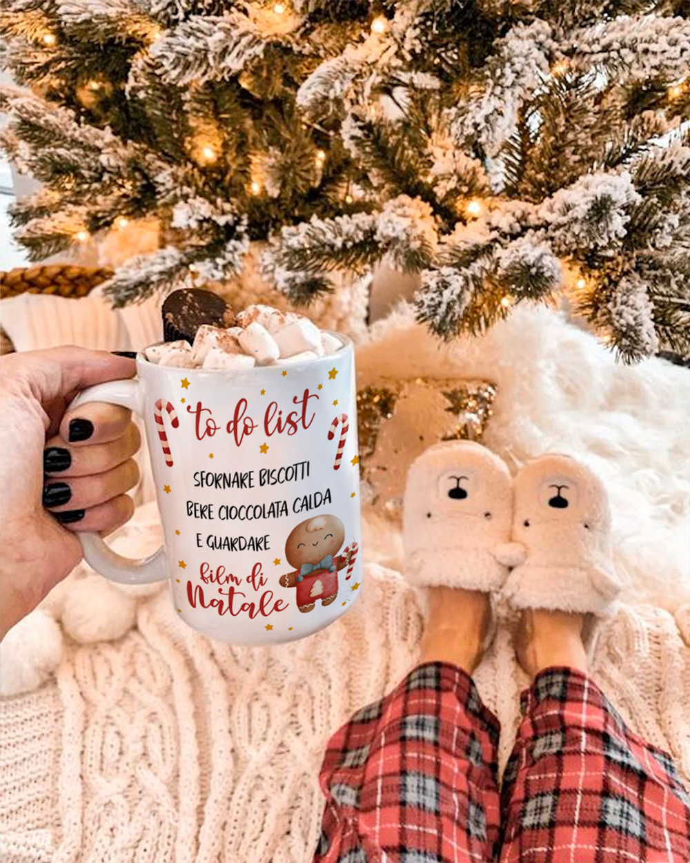 Adorabile tazza mug in ceramica personalizzabile con dedica e biscottini di pan di zenzero. Sarà il contenitore perfetto per ogni bevanda calda, come tè, tisane e cioccolata calda. Regalala alla tua amica del cuore che ama pianificare tutto in ogni particolare, per non farle dimenticare come festeggiare un Natale spensierato!
