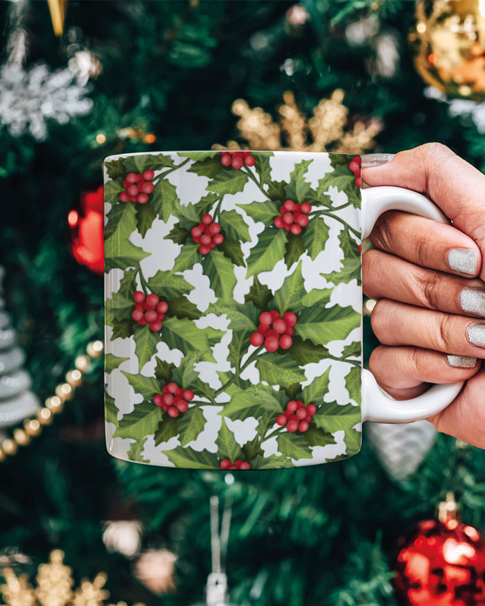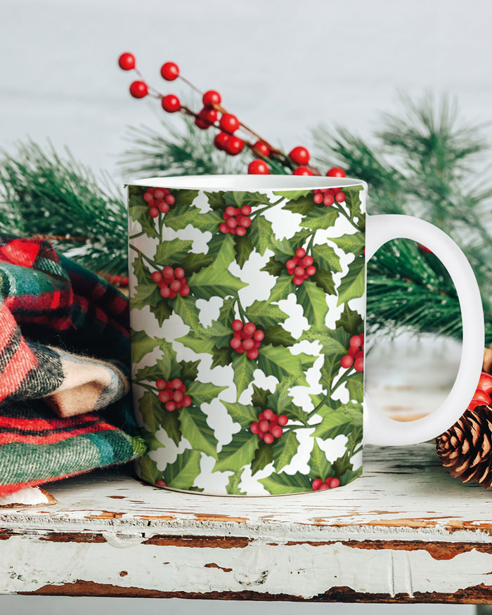 Simpaticissima tazza mug in ceramica con foglie di vischio stampate. Perfetta per contenere tè, latte e tisane, sarà un pensiero natalizio davvero apprezzato da donare all’amica del cuore, alla mamma o alla sorella che non mancheranno di utilizzarla con piacere!