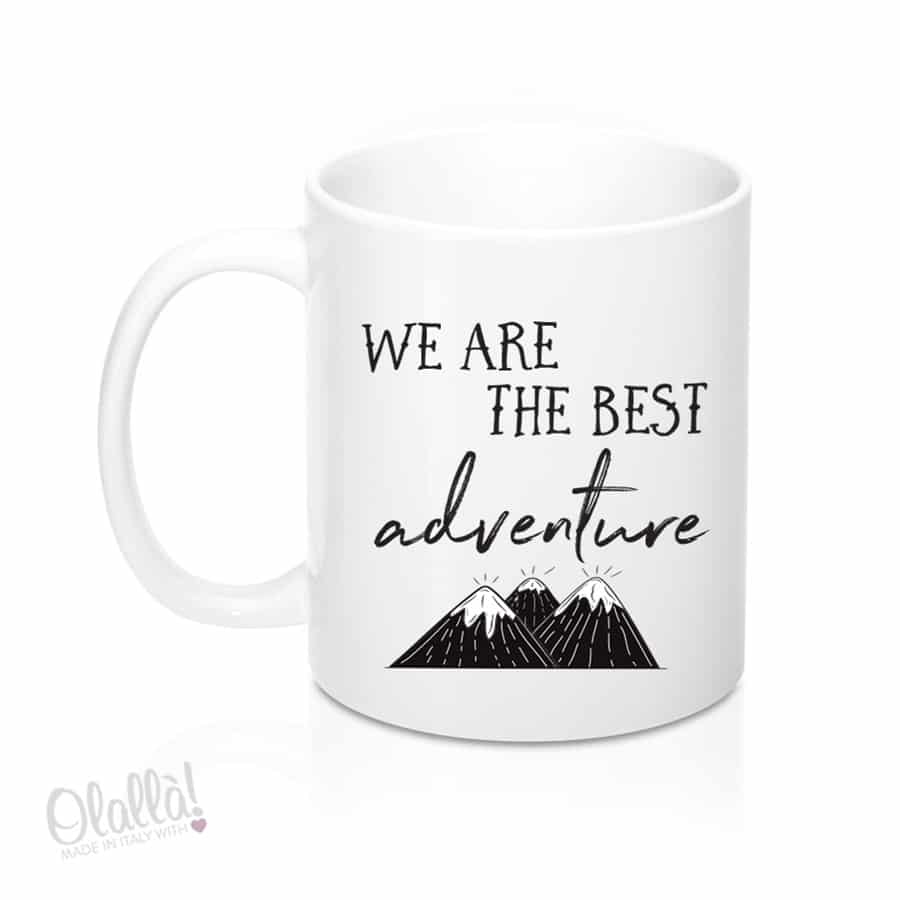 Le nostre tazze sono in resistente ceramica, personalizzate con varie stampe realizzate in laboratori italiani artigianalmente con la tecnica della termosublimazione. L’elaborazione grafica è inclusa nel prezzo. In questo caso è stata scelta un’immagine dallo stile “montanaro” con una romantica frase: “Siamo noi la miglior avventura” (“We are the best adventure”). La fusione dei due stili calligrafici la rendono molto originale, ma tu puoi particolareggiarla ancora di più, personalizzandola con una dedica sul retro, per un’idea regalo davvero carina per una persona importante per te!