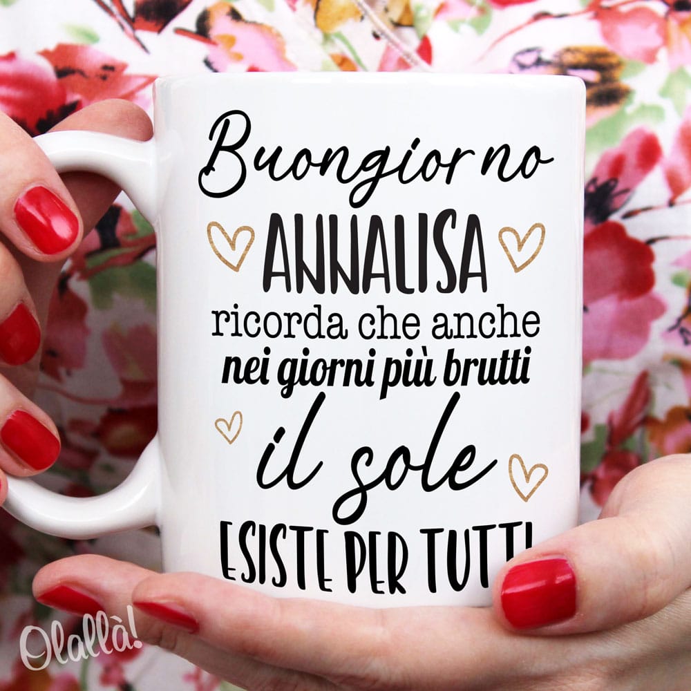 Questa tazza è interamente personalizzabile, vi basterà compilare i campi richiesti e i nostri grafici appronteranno per voi la grafica richiesta. Al costo di €1 sarà possibile visionare la grafica prima della stampa. L’elaborazione grafica è inclusa nel prezzo.