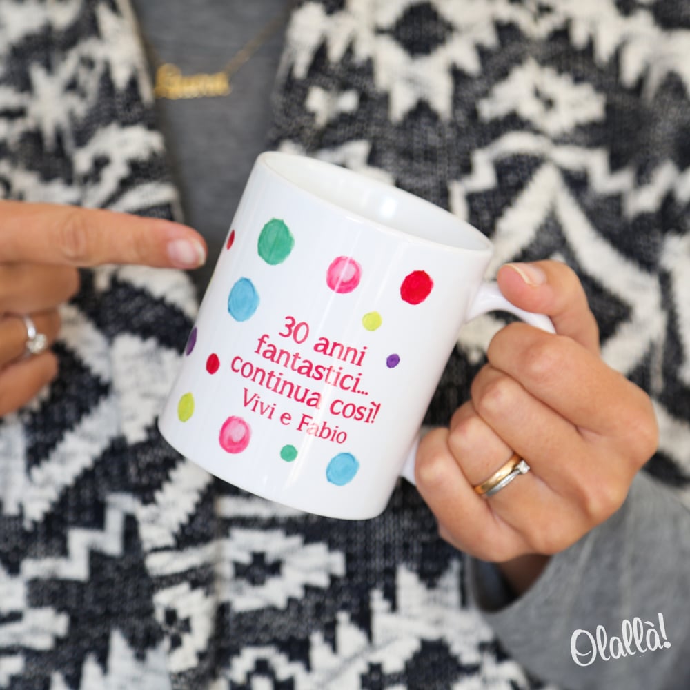 Se desiderato, la tazza può venire recapitata al destinatario del vostro regalo all’interno di una simpatica confezione regalo e accompagnata dal vostro messaggio di auguri. Se lo desiderate, vi basterà compilare il modulo dove richiesto alla voce confezione regalo e inserire il testo del vostro eventuale messaggio d’auguri.