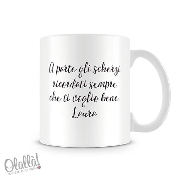 Questa tazza è interamente personalizzabile, vi basterà compilare i campi richiesti e i nostri grafici appronteranno per voi la grafica richiesta. Al costo di €1 sarà possibile visionare la grafica prima della stampa. L’elaborazione grafica è inclusa nel prezzo.