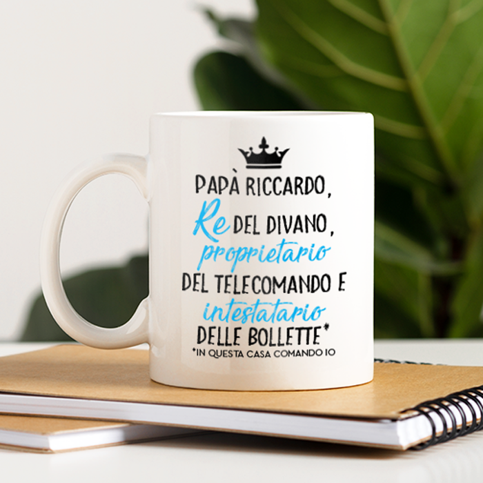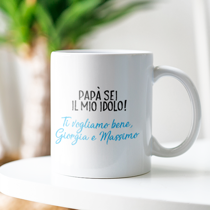 Simpatica tazza in ceramica, personalizzata artigianalmente con la tecnica della termosublimazione, ideale per la Festa del Papà o per qualsiasi compleanno, sia per uomo sia per donna.