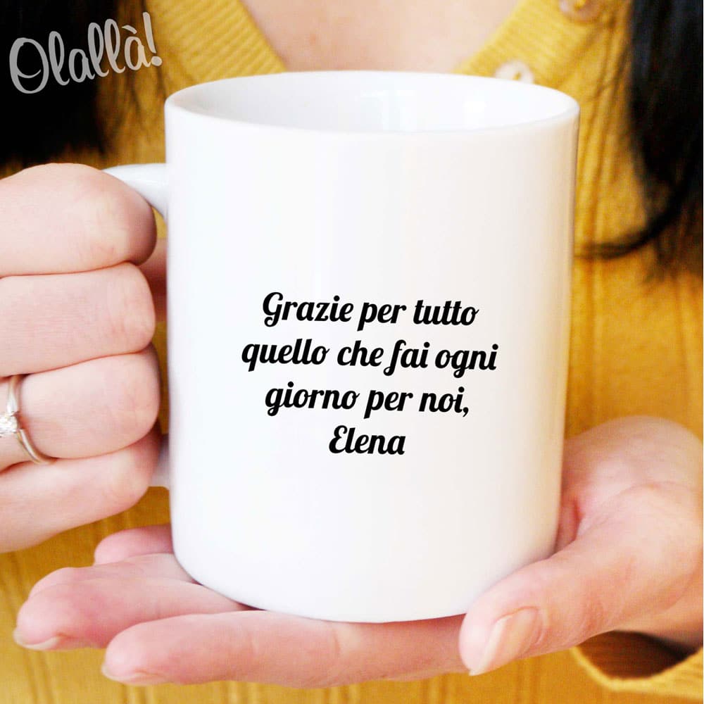Questa tazza è interamente personalizzabile, vi basterà compilare i campi richiesti e i nostri grafici appronteranno per voi la grafica richiesta. Al costo di €1 sarà possibile visionare la grafica prima della stampa. L’elaborazione grafica è inclusa nel prezzo.