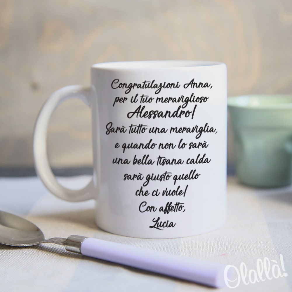 Se desiderato, la tazza può venire recapitata al destinatario del vostro regalo all’interno di una simpatica confezione regalo e accompagnata dal vostro messaggio di auguri. Se lo desiderate, vi basterà compilare il modulo dove richiesto alla voce confezione regalo e inserire il testo del vostro eventuale messaggio d’auguri.