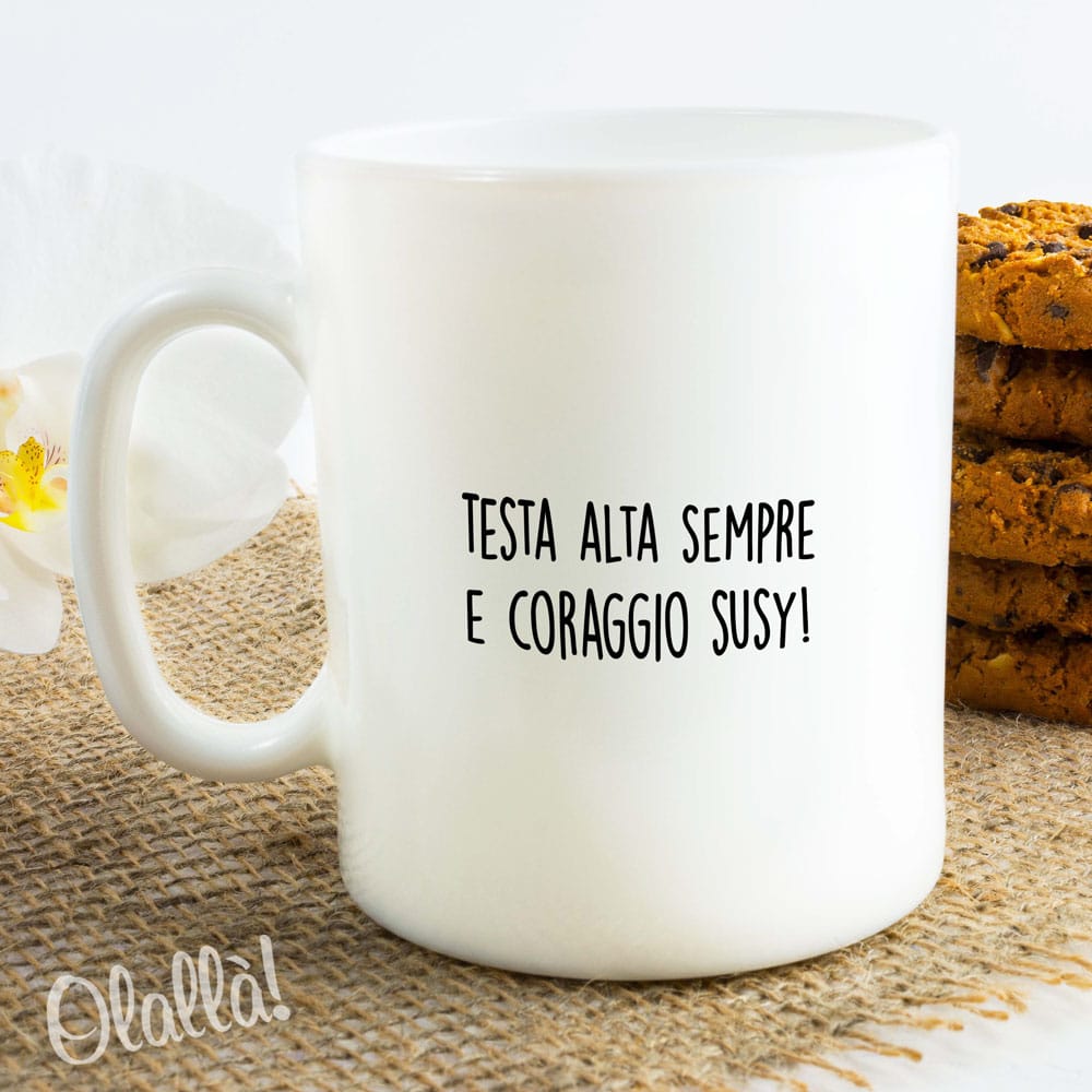 Questa tazza è interamente personalizzabile, vi basterà compilare i campi richiesti e i nostri grafici appronteranno per voi la grafica richiesta. Al costo di €1 sarà possibile visionare la grafica prima della stampa. L’elaborazione grafica è inclusa nel prezzo.