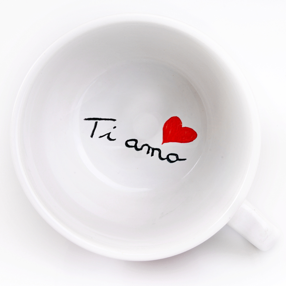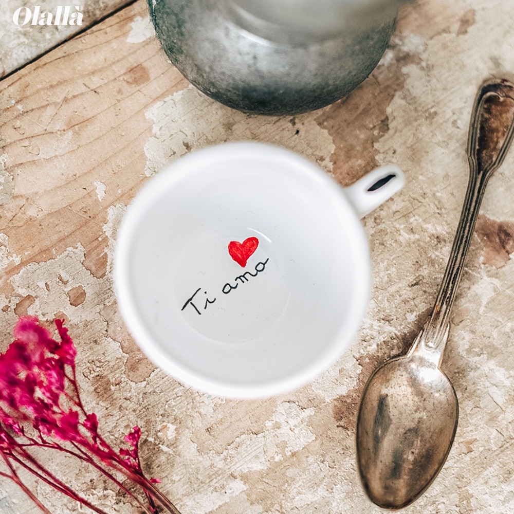 - Un dolce messaggio segreto da scoprire: La scritta “Ti Amo” accompagnata da un delicato cuoricino si trova sul fondo della tazzina, visibile solo una volta terminato il caffè. Un dettaglio semplice ma d’effetto.