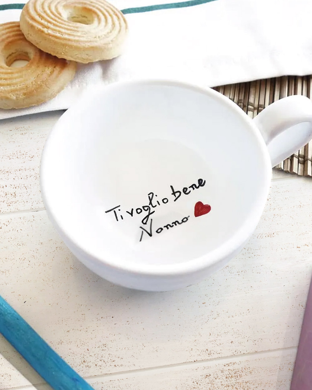 La tazzina presenta la scritta “Ti voglio bene Nonno” che rimane standard e pertanto non può essere modificata.