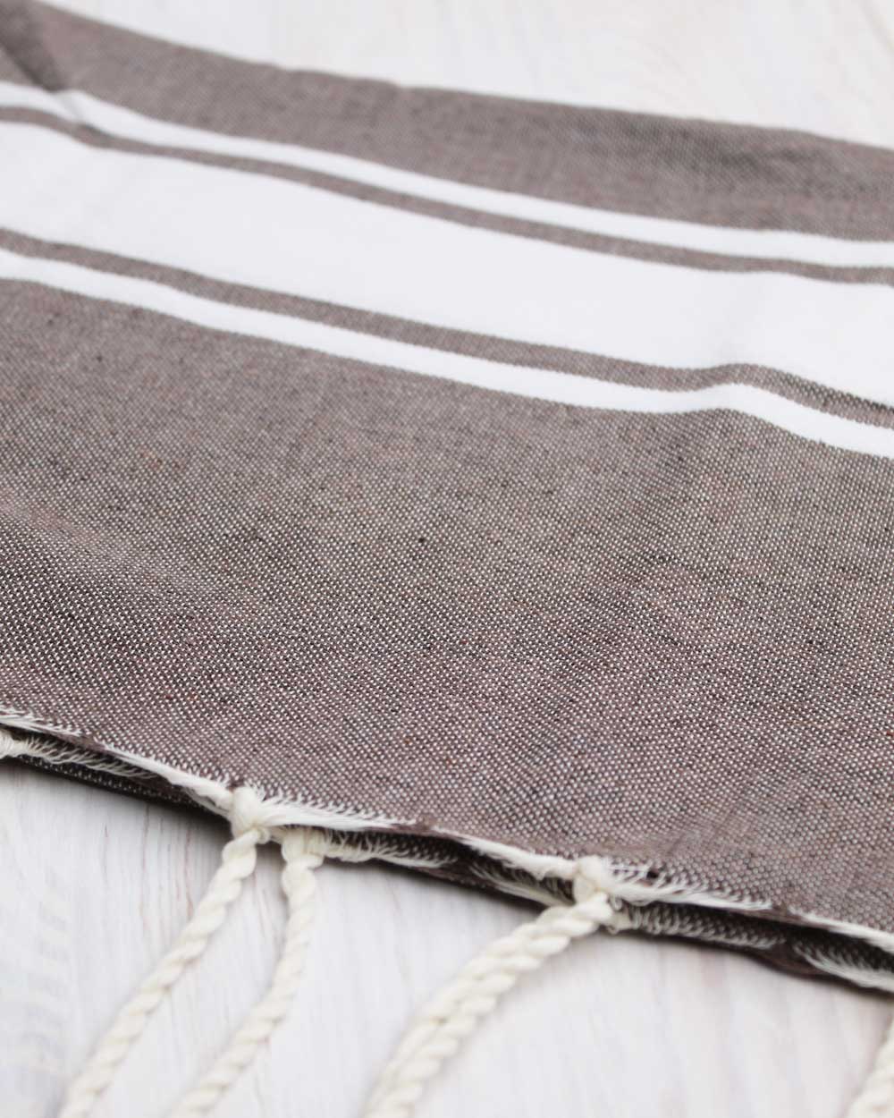 Telo mare fouta in cotone 100% con frange tessute ed annodate a mano.