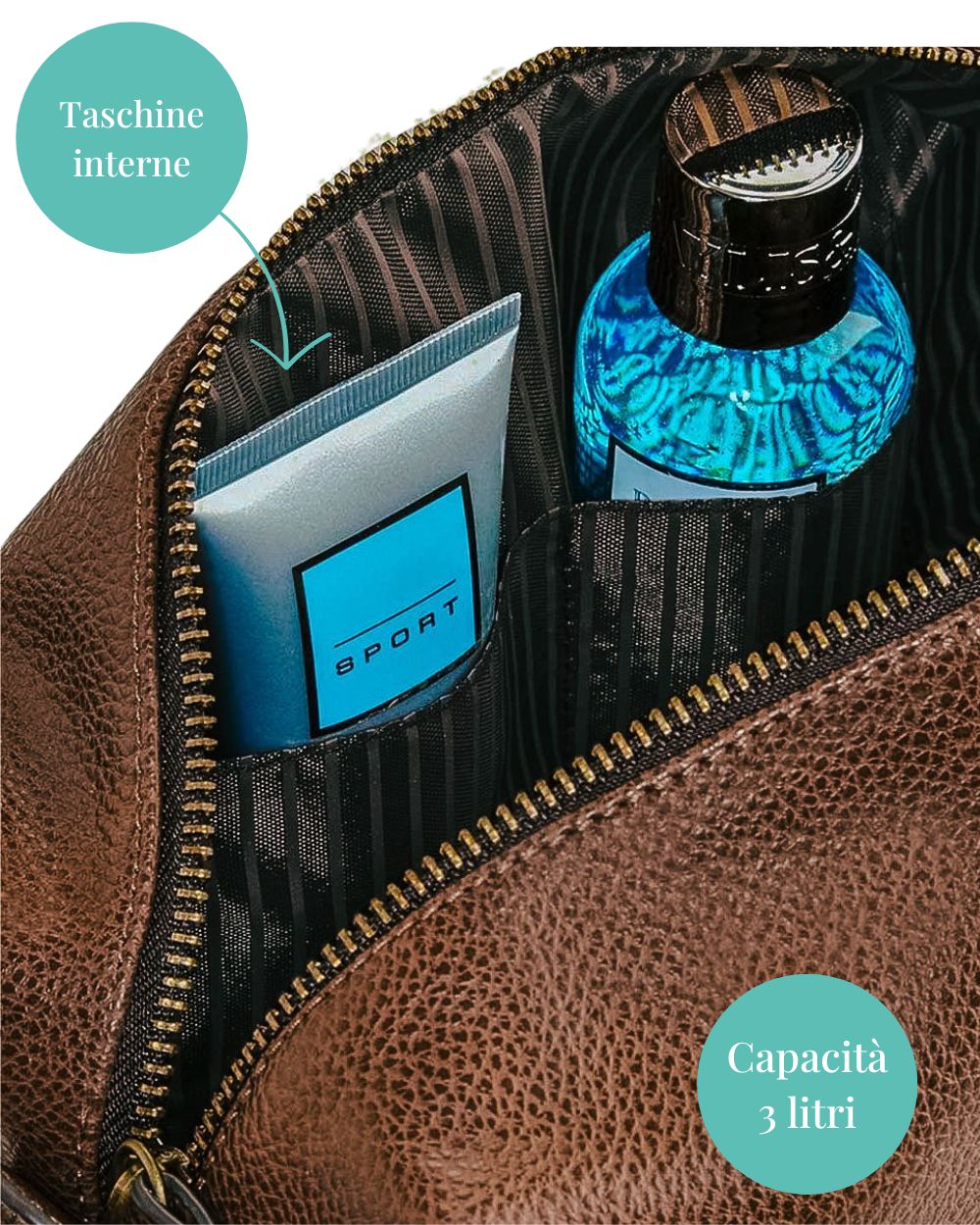 Qualità e resistenza: Realizzato in ecopelle, questo beauty case è resistente e durevole, progettato per accompagnare il destinatario in ogni viaggio. La cerniera in metallo e la fodera morbida all’interno proteggono gli oggetti, garantendo al contempo un tocco di eleganza.