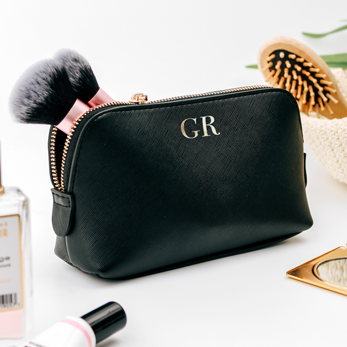 Carinissima trousse astuccio beauty case nécessaire porta trucchi in ecopelle effetto simil-graffiato personalizzato con le iniziali. Un’idea regalo fantastica per se stessi o per chi ama gli oggetti raffinati. Pratico per contenere tutto il necessario per un trucco veloce, entrerà con facilità nella borsetta o in valigia. La personalizzazione rende questa trousse assolutamente unica e bellissima per un regalo di stile a una donna amante del make-up.