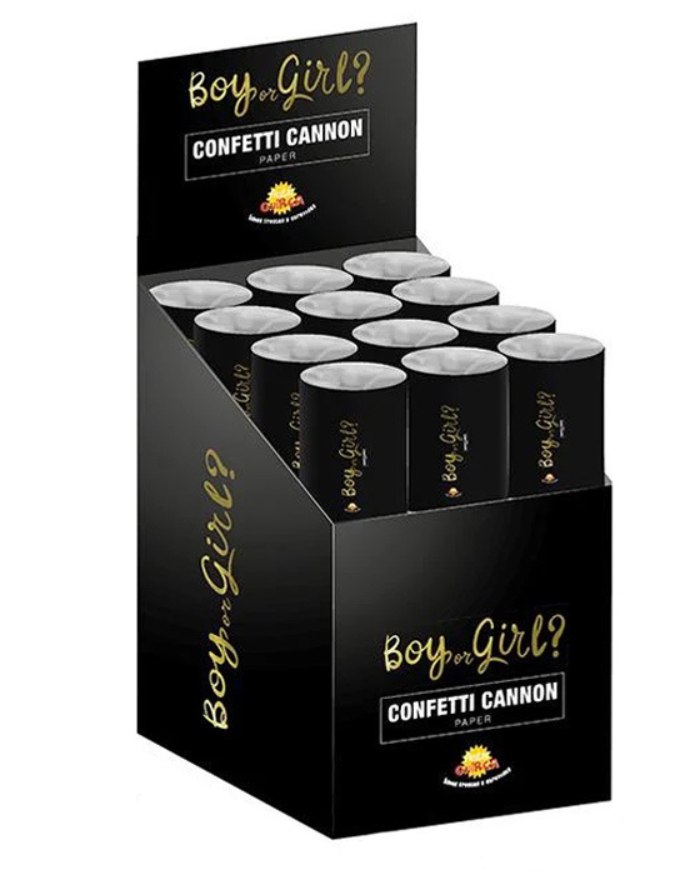 Simpaticissimo tubo spara coriandoli di colore rosa e oro, perfetto da usare al tuo gender reveal party. Sorprendi tutti gli invitati con una pioggia di coriandoli rosa e oro per rivelare loro che sta per arrivare al mondo una nuova bimba!
