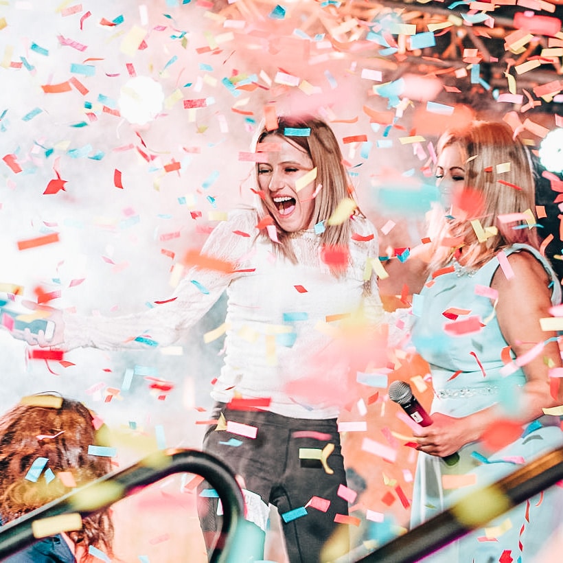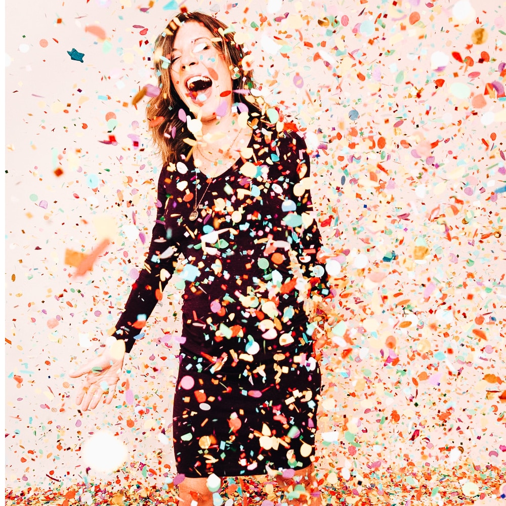 Ruota il fondo del tubo e ricopri gli invitati con una pioggia di coriandoli!