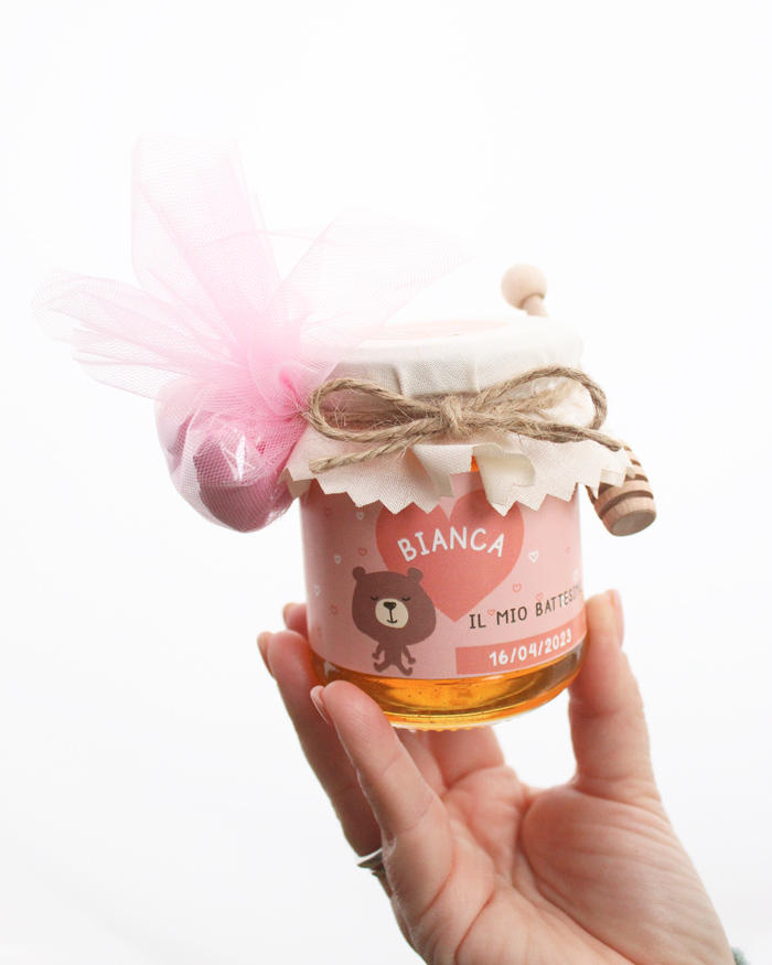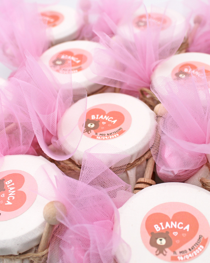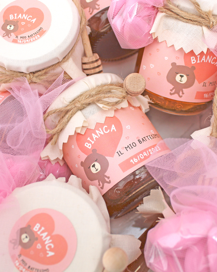 Recensisci per primo “Vasetti di Miele 40 gr con Etichetta Rosa Personalizzata con Orsetto – Idea Bomboniera per Battesimo” Annulla risposta