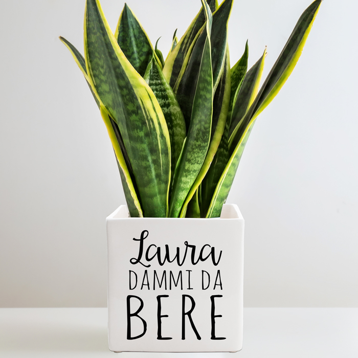 Vasi in ceramica made in Italy verniciati con il vostro colore di preferenza e personalizzati con una frase simpatica a scelta. La frase viene impressa sul vaso per mezzo di una pellicola adesiva.