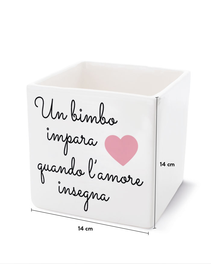 Questo splendido vaso in ceramica viene realizzato e stampato artigianalmente ad alta qualità. Il regalo perfetto per la maestra dei tuoi bambini! Un modo tenero e significativo per omaggiare una persona che ha saputo dare loro così tanto e sarà per sempre nelle loro vite.