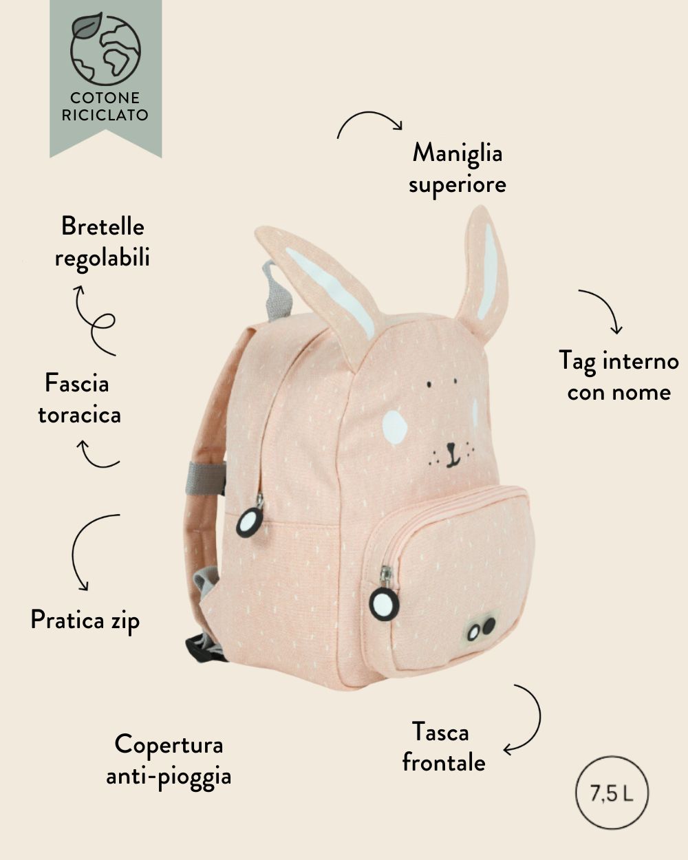 1. Unico e Originale: questo zainetto si distingue per il suo design originale e diverso dal solito, che sicuramente farà colpo sulla bambina e sui suoi compagni. Con la coniglietta al suo fianco, la piccola si sentirà speciale e alla moda.