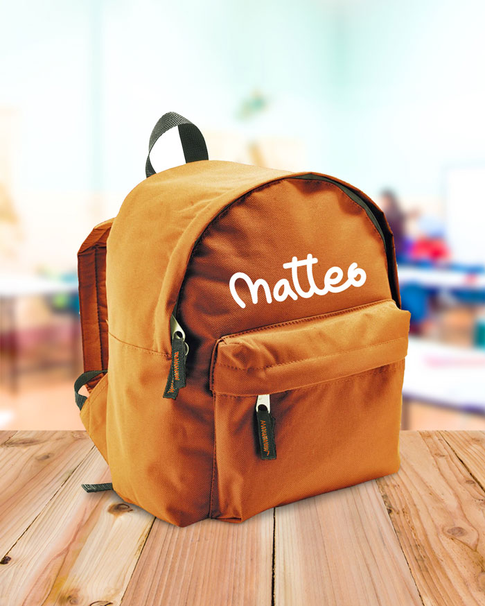 Zainetto personalizzato con il nome in corsivo, perfetto per la scuola o l’asilo. Rendi unico il primo giorno di asilo, nido o scuola materna del tuo bimbo o bimba con questo fantastico zainetto che sfoggerà con grande orgoglio!