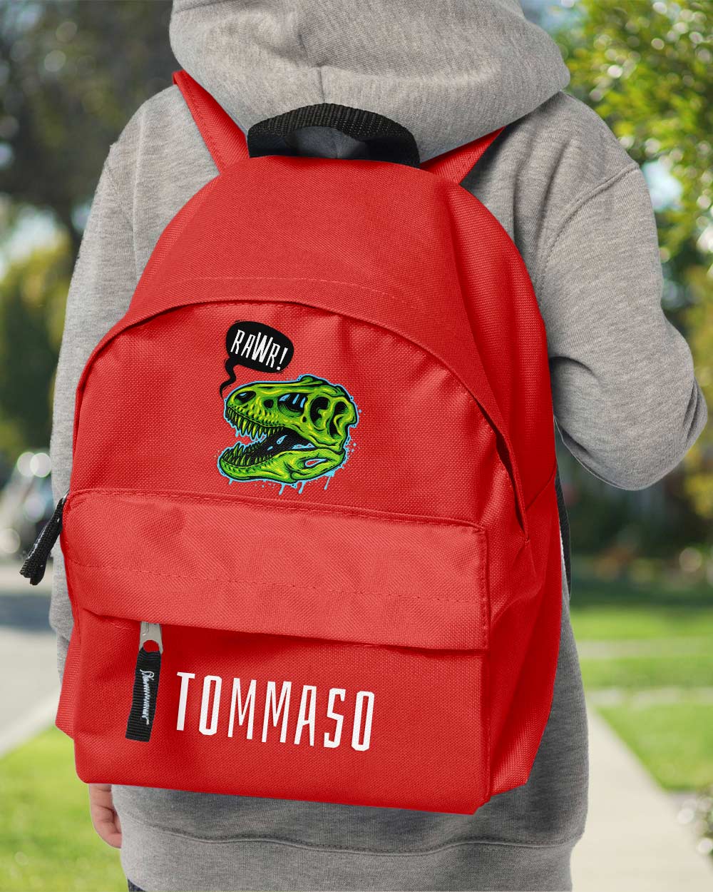 ZAINETTO SCUOLA PERSONALIZZATO CON NOME E DINOSAURO T-REX! PER UN RITORNO A SCUOLA ALL’INSEGNA DELL’AVVENTURA!